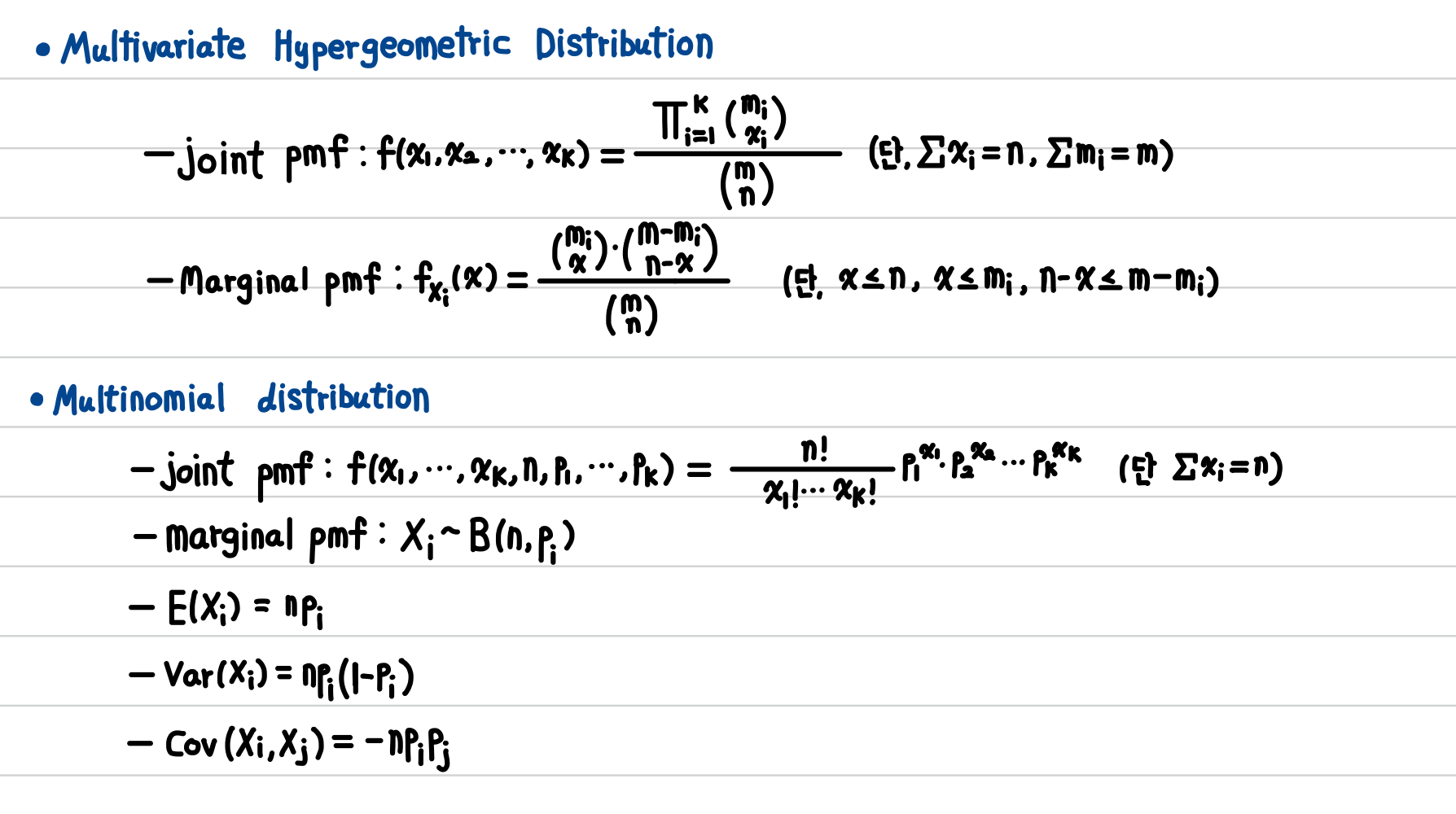 또한, 초기하분포와 이항분포를 다차원으로 확장했을 때의 분포는 아래와 같습니다.
