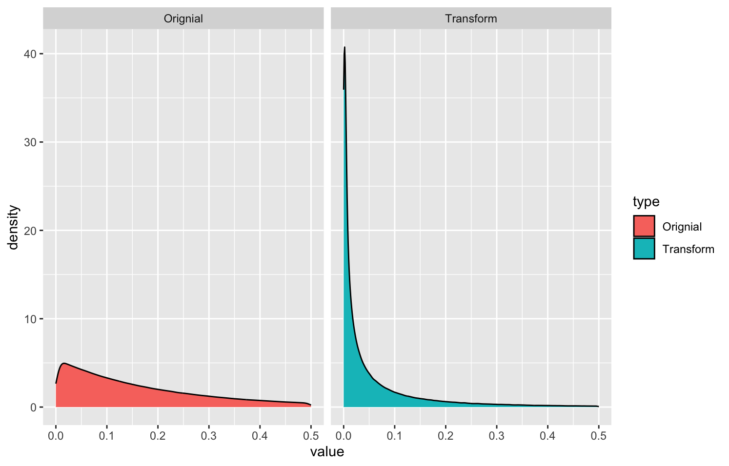 tibble(type = rep(c("Orignial", "Transform"), each=n),