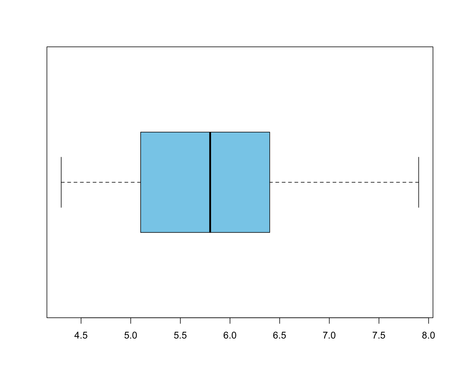 fivenum(data) # 4.3 5.1 5.8 6.4 7.9