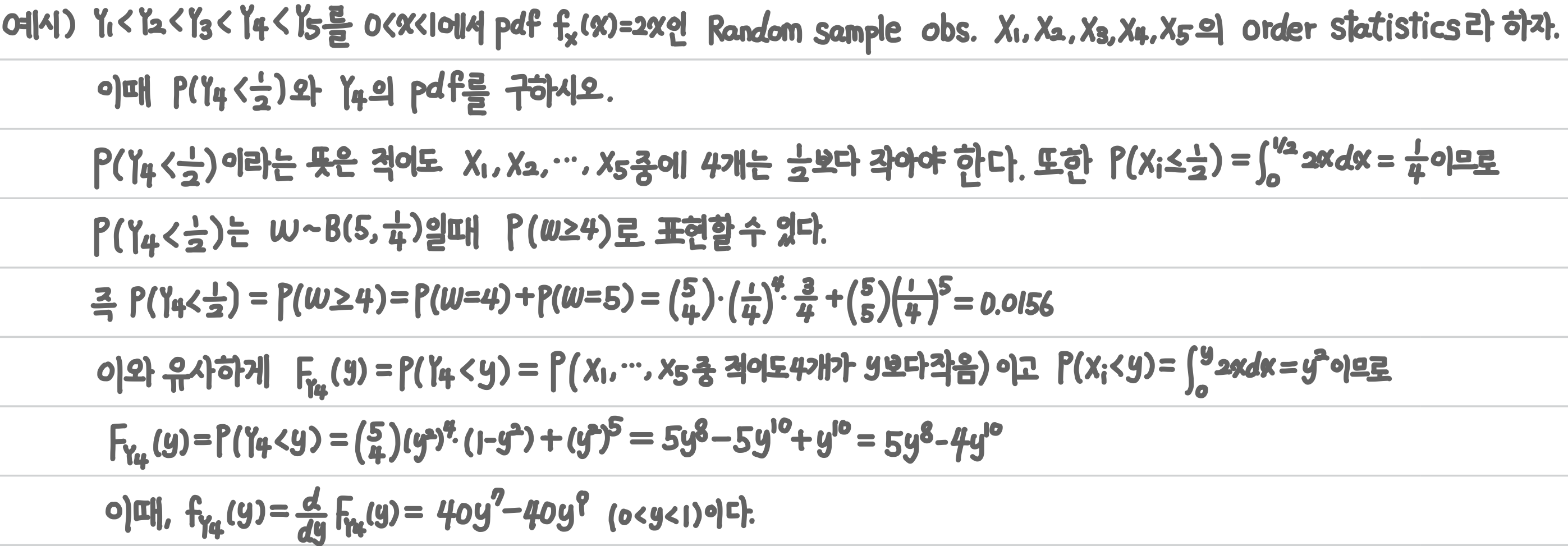 - kth Order Statistics($Y_k)$ : $X_1, X_2, \cdots, X_n$에서 k번째로 작은 관측값을 의미
