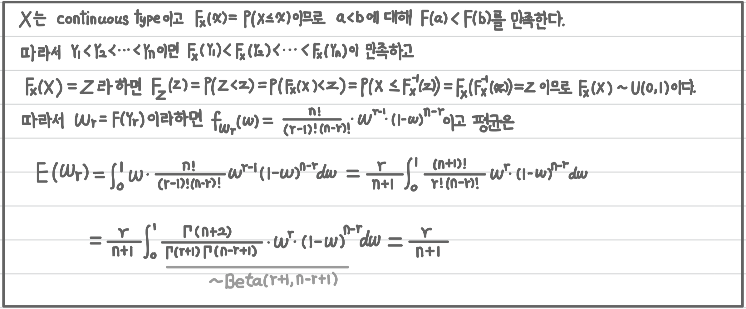 - [특징] $E[F_X(Y_r)] = \frac{r}{n+1}$