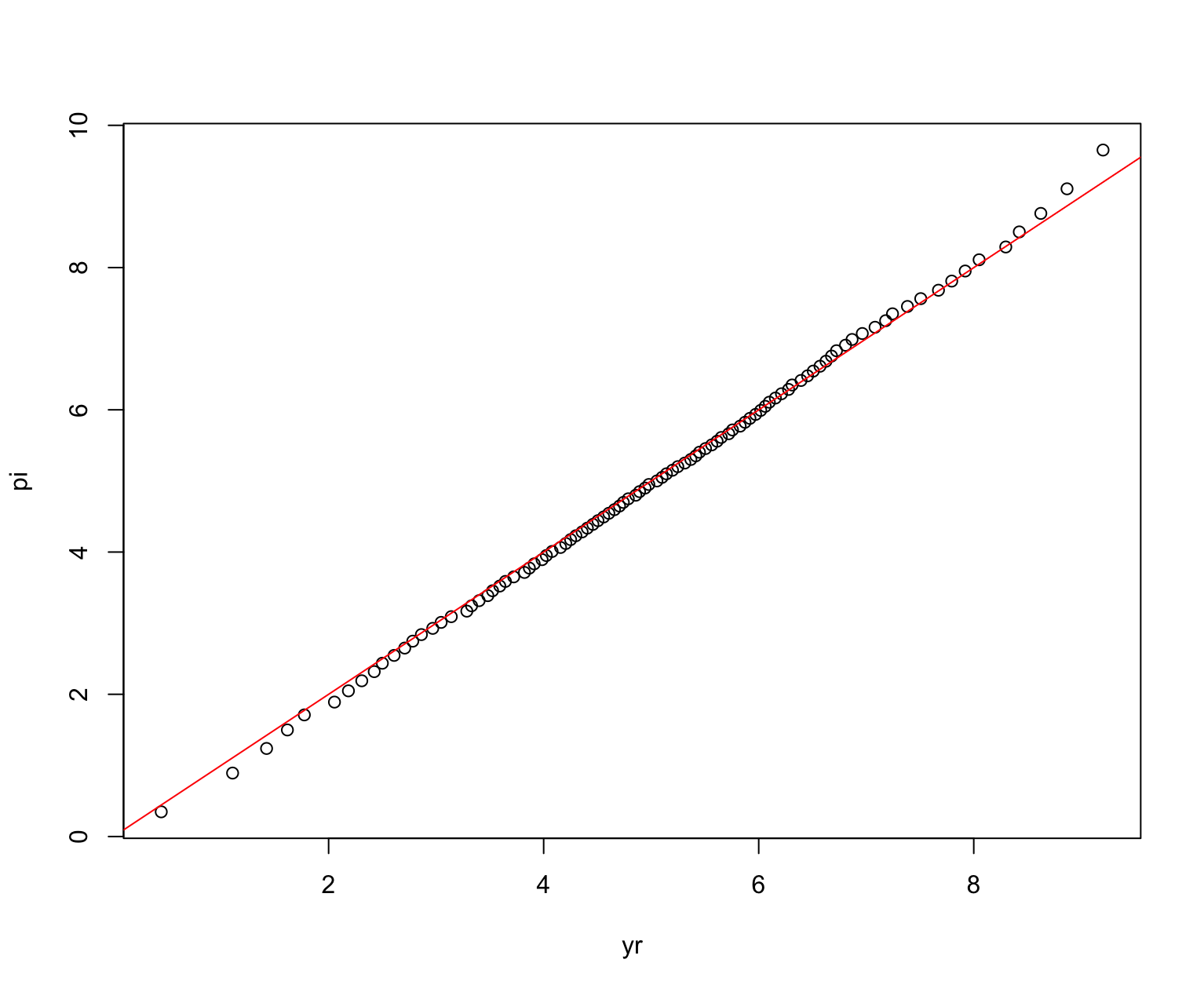 이때 $(y_r, \pi_p)$를 Quantile-Quantile Plot이라고 하면 주로 QQplot이라고 많이 알려져 있습니다.