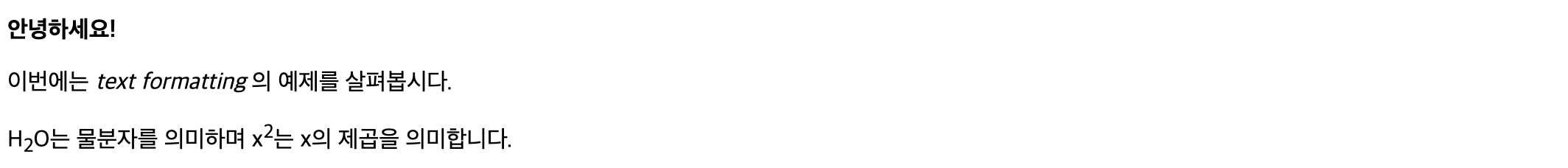 아래는 Text formatting 요소를 사용한 코드입니다.