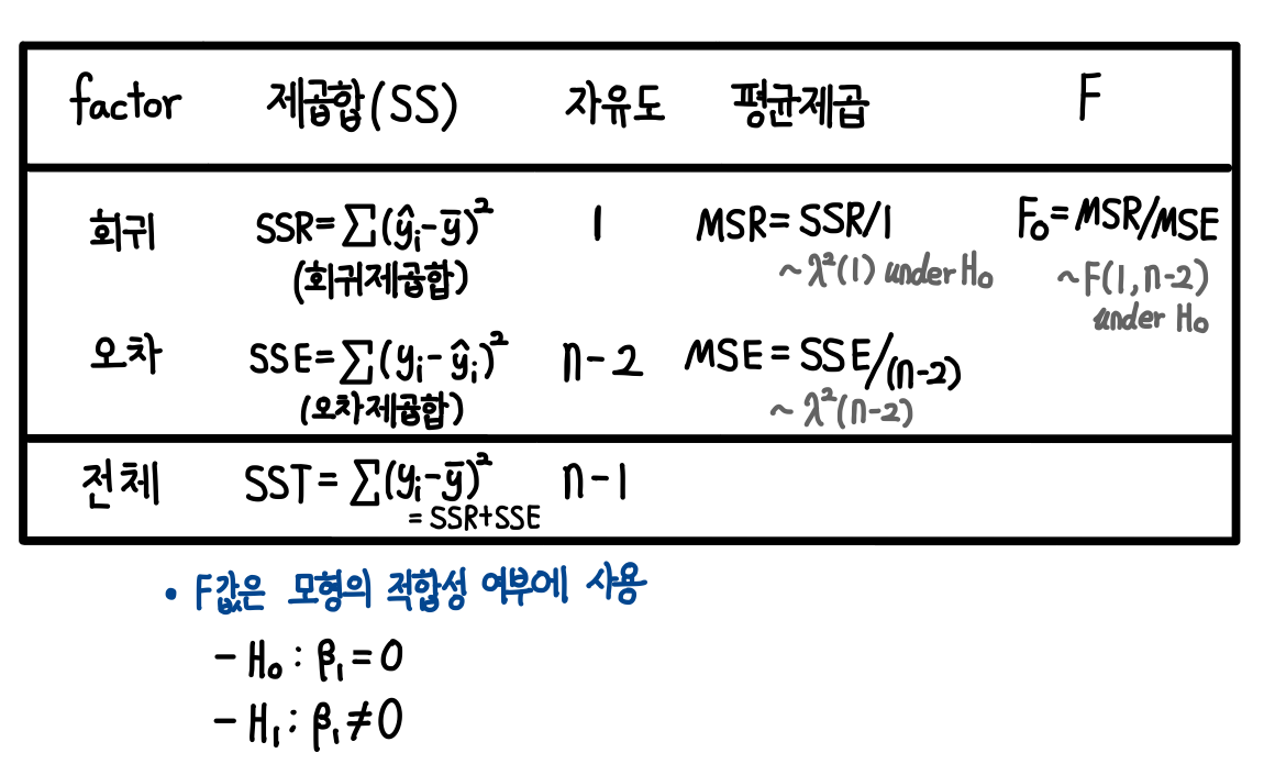 (참고로, SSE : 오차제곱합, SSR : 회귀제곱합, SST : 총제곱합)