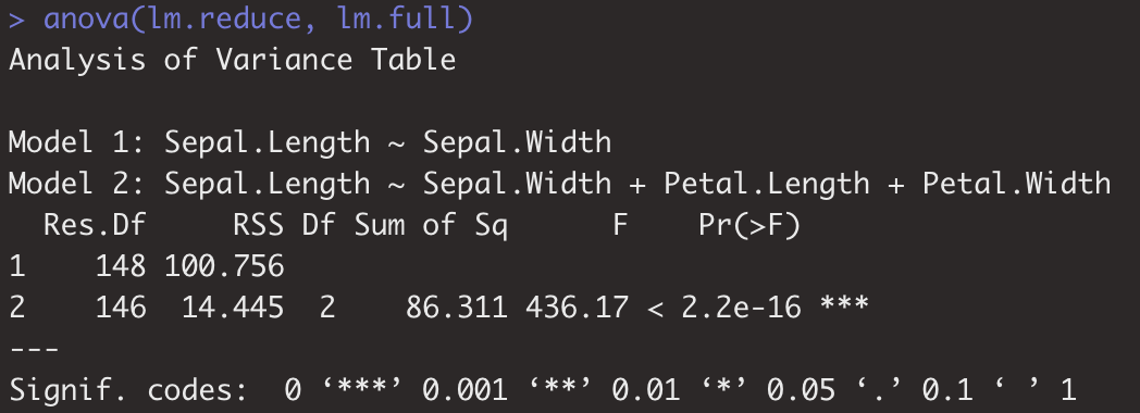 lm.full <- lm(Sepal.Length~Sepal.Width+Petal.Length+Petal.Width, data = iris)