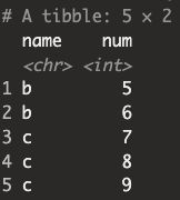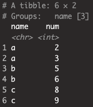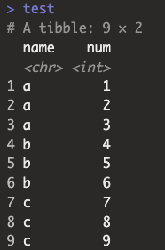 test <- tibble(name = rep(letters[1:3], each=3), num = 1:9)