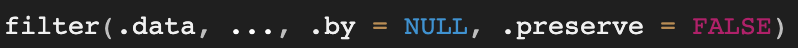 - 조건의 결과가 TRUE인 모든 행을 남기며, FALSE나 NA를 반환 시에는 해당 행은 출력하지 않는다.
