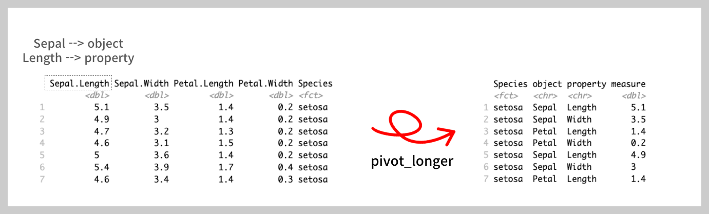 - cols : <tidy-select> longer format으로 피봇할 열들을 지정 (cols_vary 인자는 행들을 어떻게 정렬할지)