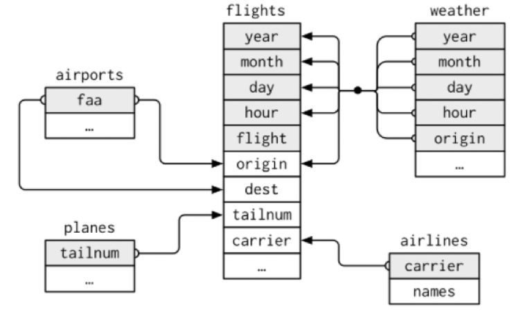 | left_join(x, y, by) | 왼쪽 외부 조인 | 왼쪽 테이블의 키를 중심으로 매칭 |