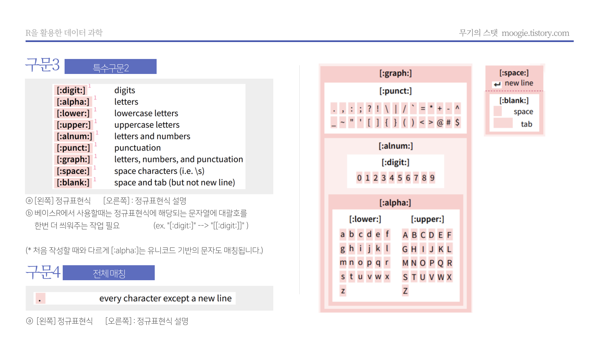 - ignore_case = T : 문자의 대문자나 소문자 형태 모두를 매칭