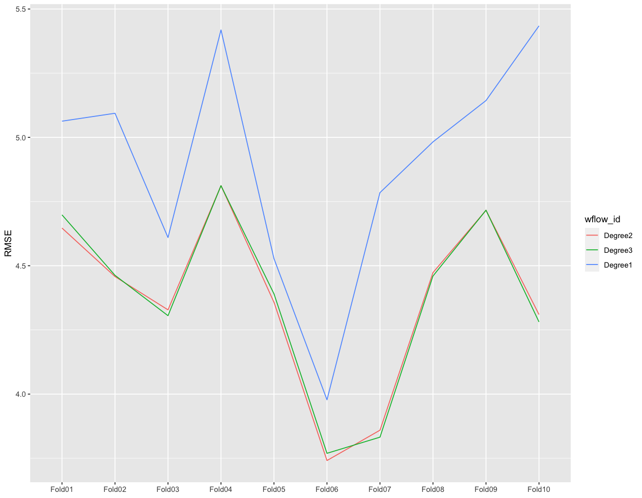 ylab("RMSE") + xlab(NULL) + scale_color_discrete(labels = c("normal_linear" = "Degree1", "degree2_linear" = "Degree2", "degree3_linear" = "Degree3"))