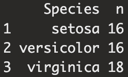 iris_sample %>% count(Species) %>%
