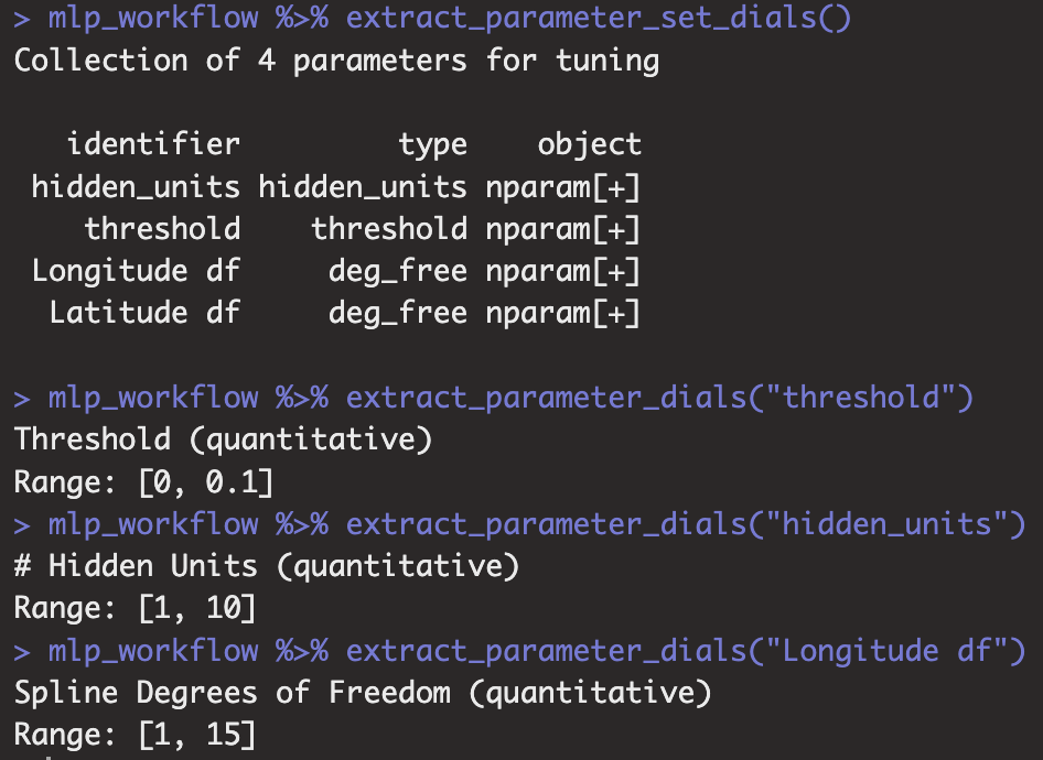 모델과 recipe 객체를 추가한 workflow 객체에 extract_parameter_set_dials를 사용한 경우 모델과 레시피에 있는 모든 튜닝파라미터를 반환합니다.