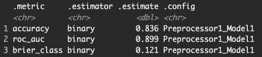 fit_resamples와 마찬가지로 collect_metrics 함수를 사용할 수 있습니다.